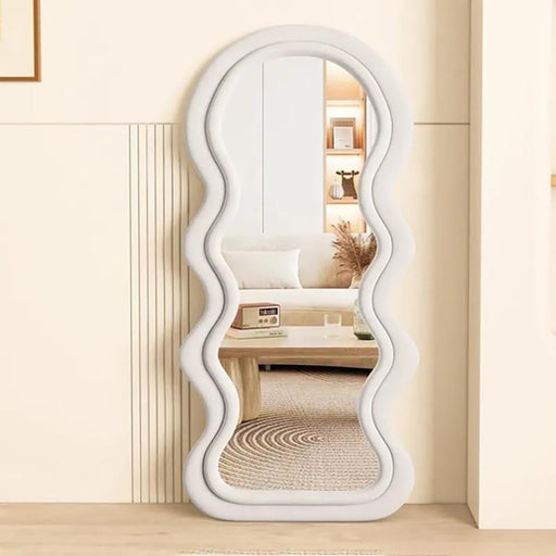 Wavy-Frame Full Length Mirror with Plush Fabric Trim- 170x70cm