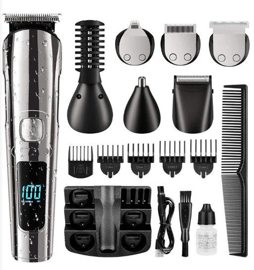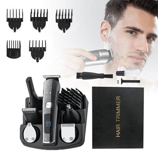 Features: All-in-One Men's Hair Clippers: With 6 interchangeable heads and 5 guide combs, meet all your grooming needs—from hair trimming to nose h...