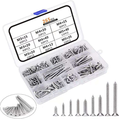 Stainless Steel Phillips Flat Head Screw Set 265 Piece Set