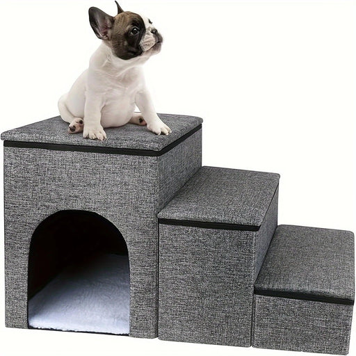 Foldable 3-Step Pet Stairs with Hidden Condo Storage
