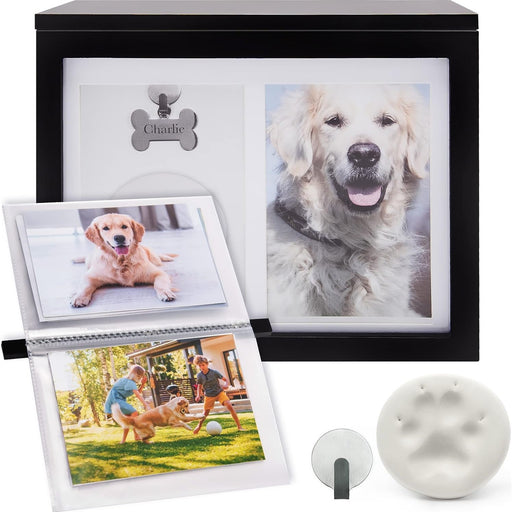 Honor the memory of your treasured companion with our handcrafted Wooden Memorial Dog Urn with paw print clay for personalization, a dignified and ...
