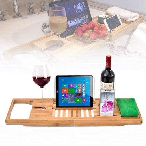 Bamboo Bathtub Caddy Tray with Extending Sides