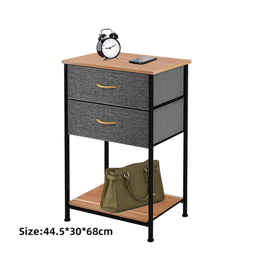 2 Drawers Steel Frame Fabric Bedside Table