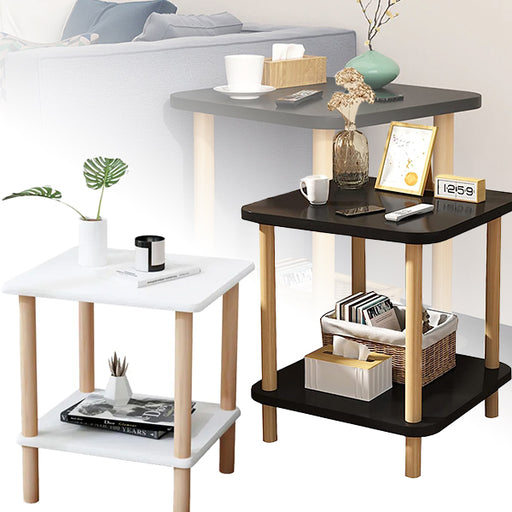 2-Tier Square Wooden Bedside Table