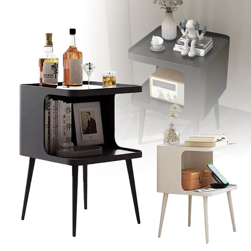 2-Tier Tall Square Wooden Side Table Bedside Tablekey Features: This bedside table is reasonable in size and full in function makes it very suitabl...