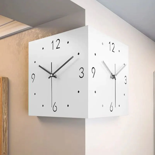Features: Creative Double-Sided Design: Unique corner wall clock with a two-faced display, ideal for mounting on columns or hallway corners, enhanc...
