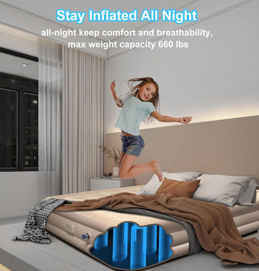 Features: Built-In Electric Pump: Featuring a robust ABS pump powered by a 2000mAh lithium battery, this mattress inflates in just 3 minutes. The p...