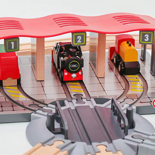 Low stockKey Features: This wood train tracks that easily connect, 3 magnetic trains to conduct, a engineering vehicle team and cars to drive, an railway st...