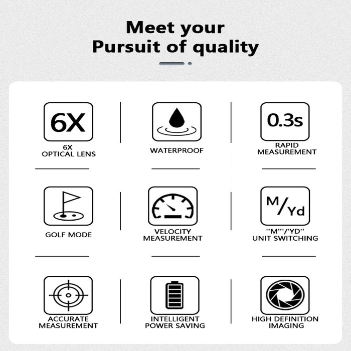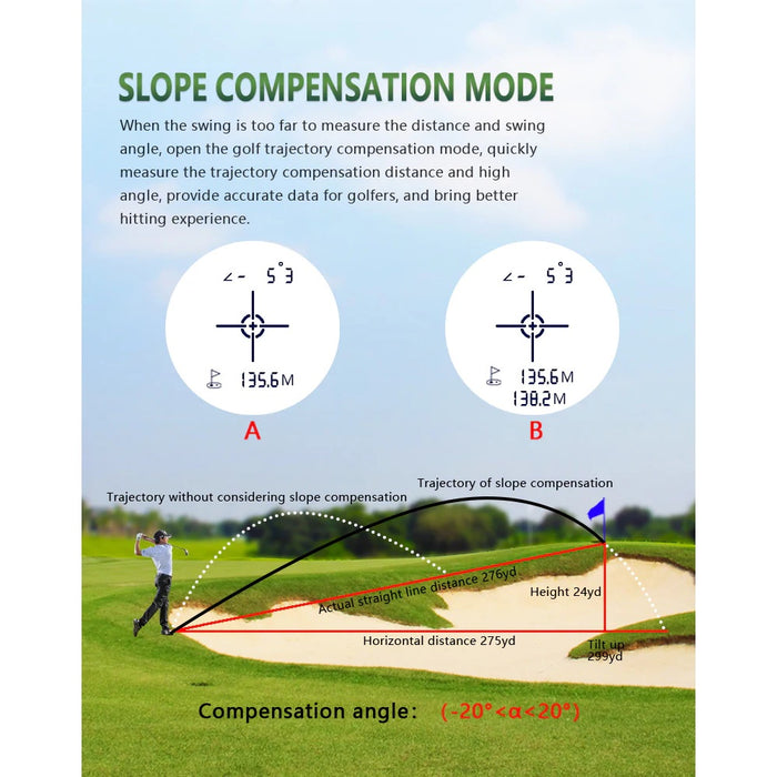 This laser hunting rangefinder has 7 functions: ranging mode, all-in-one mode, scanning mode, speed measurement mode, two points height measurement mode, golf distance compensation mode and storage mode