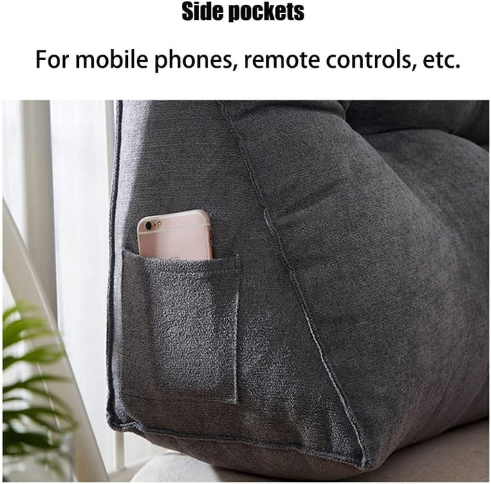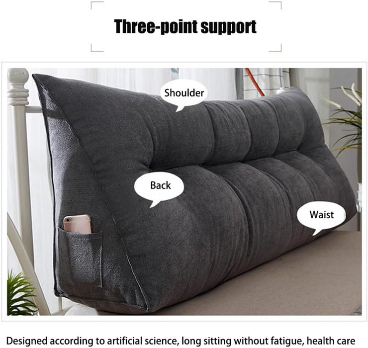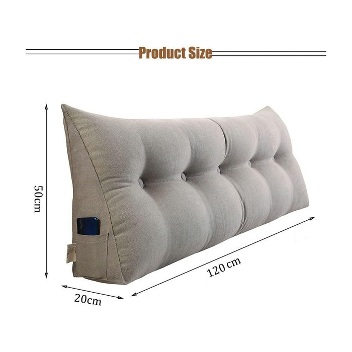 120CM Cotton Linen Filled Triangular Wedge Bed Cushion