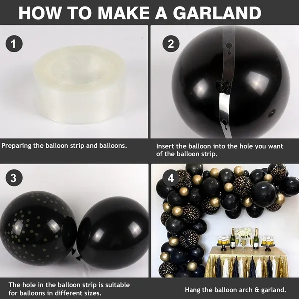 • Simple Assembly: Setting up this balloon garland is as easy as 1-2-3-4! Just follow our four-step process to inflate, secure, hang, and perfect your garland.