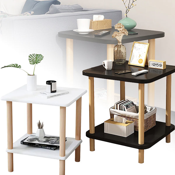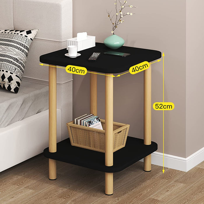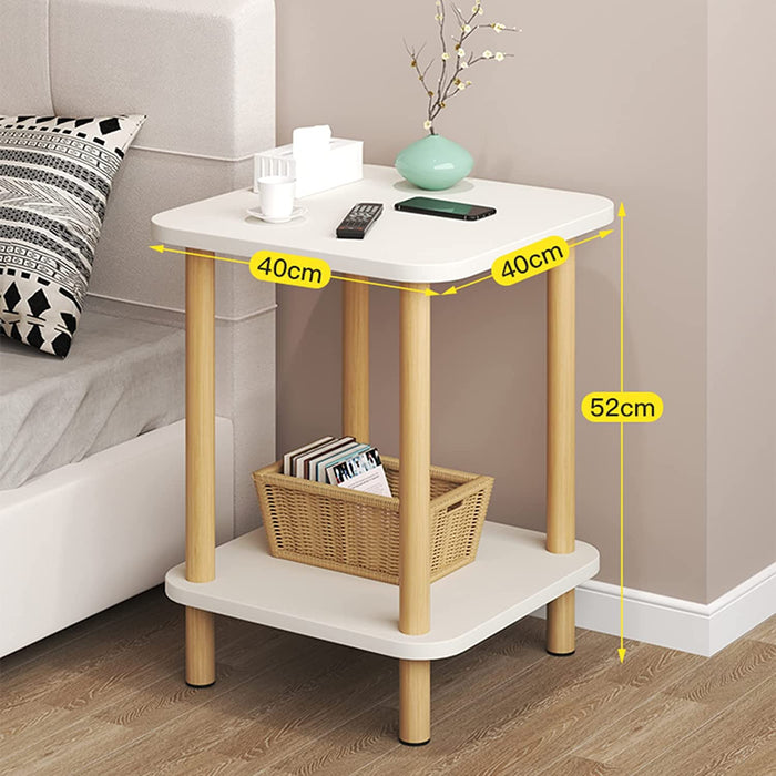 2-Tier Tall Square Wooden Side Table Bedside Table
