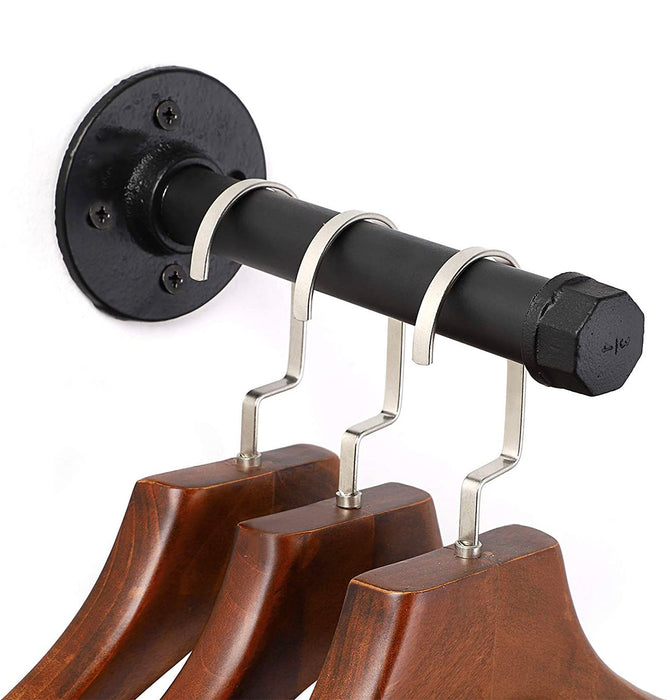 - Unique & Vintage Design: Designed as a black industrial pipe, this clothes hanger holder exudes a unique and vintage aesthetic in your room. The ends are capped, preventing your clothes hanger from sliding off.