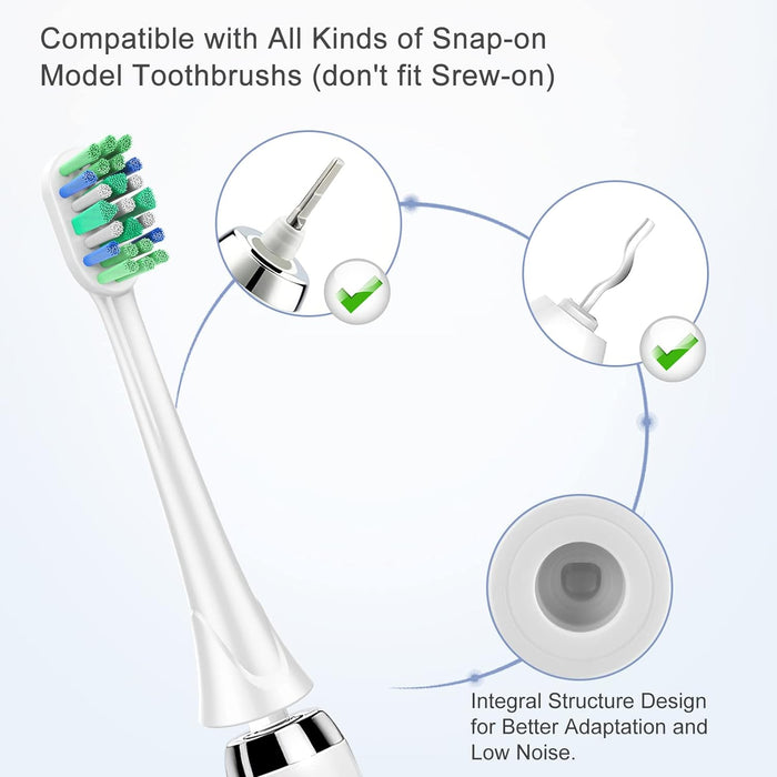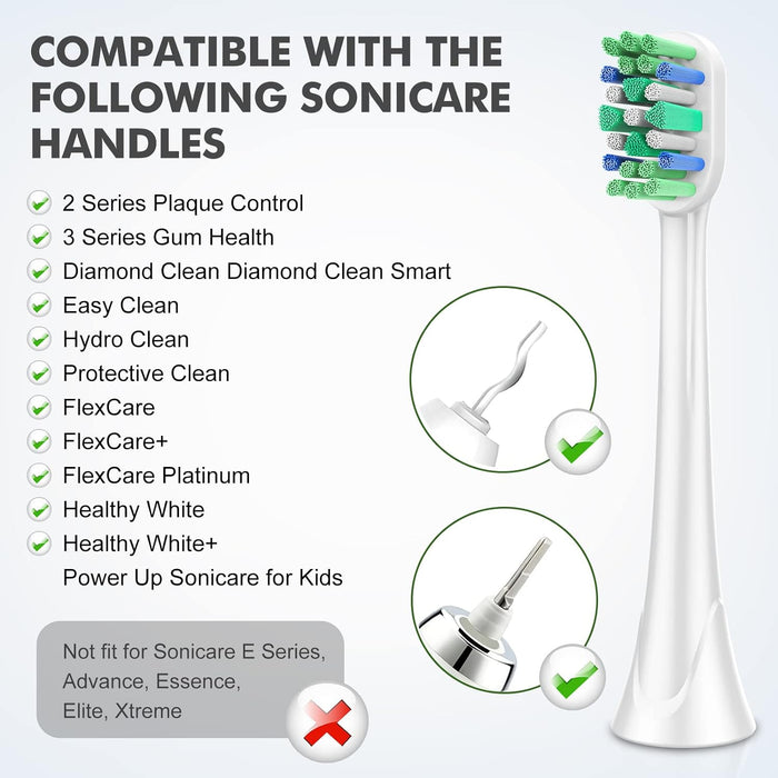 - Universal Compatibility: Our brush heads snugly fit all Philips Sonicare click-on models, offering a comprehensive range that includes ProtectiveClean, DiamondClean, and many more.