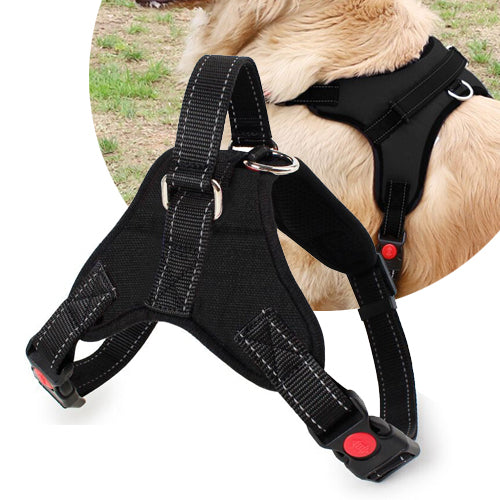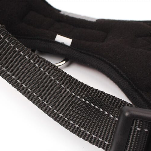 Designed with saddle type harness, the pulling pressure is evenly distributed to the body to prevent from pulling and choking, and reduces the chance of neck and chest injuries caused from pulling. - Soft lining around the back for extra protection and comfort extra protection and comfort.