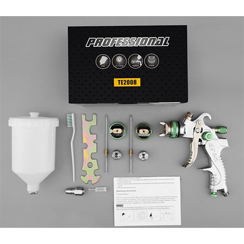 Our professional Gravity Feed (High Volume Low Pressure) Spray Gun equipped with 3 fluid tips is economical, yet durable. It supplies low pressure through the air cap which makes the spraying softer, easily controlled, and less overspray in high transfer efficiency.