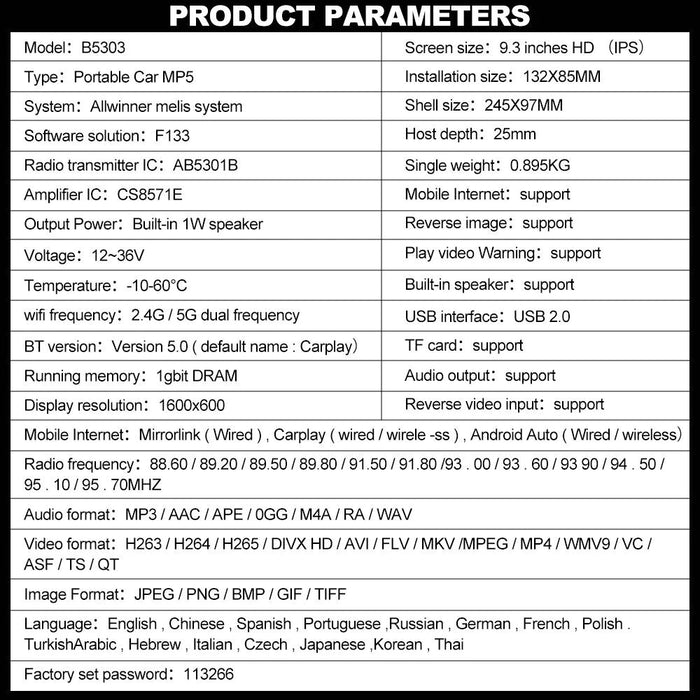 - Mirror Link Compatibility: Supports mirror link for most Android and iOS phones, effortlessly displaying smartphone software on the touchscreen. Features include GPS navigation, music playback, movie watching, and 1080P video playback.