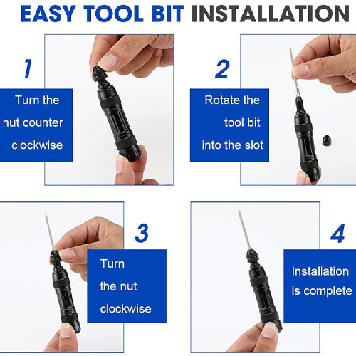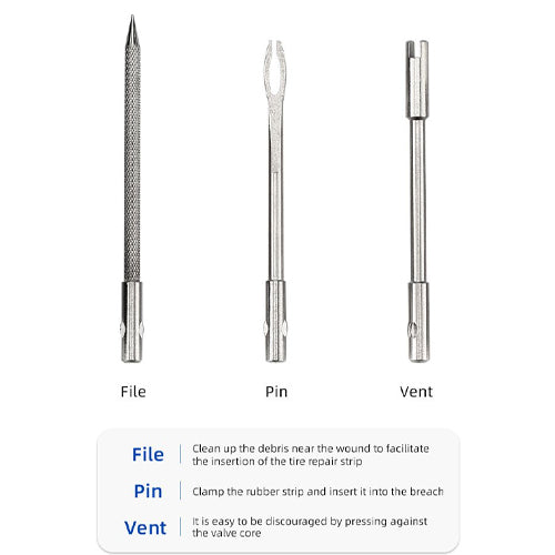 - TUBELESS TIRE REPAIR KIT CONTAINS 3 ESSENTIAL TOOLS - Besides the essential tire reamer and plug fork tools, this tubeless tire repair kit features a valve stem core removal tool that will allow you to remove the valve stem core and insert maximum, unrestricted air pressure to seat the bead and air up tire.