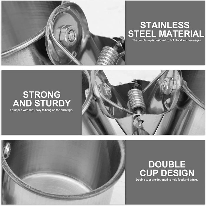- The bird feeding dish cups are composed of two high quality stainless steel cups and a firm clamp. Non-toxic, tasteless, bacteria-free & durable.