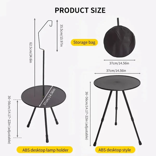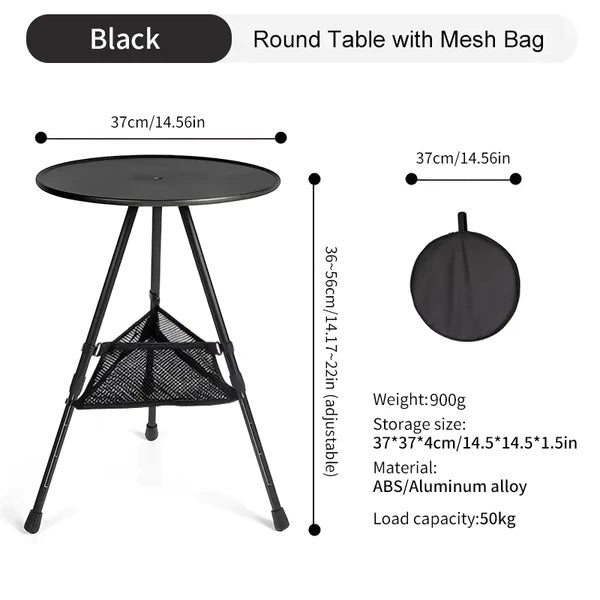 - Easy Setup, Convenient Portability: Setting up your camping table is quick and hassle-free—simply slot the table corners into place. Its removable and lightweight design, along with the included carrying case, makes it your go-to companion for outdoor adventures. Table dimensions: table top diameter: 14.5", adjustable table legs from 14.2" to 22", weight: 2.2lb.