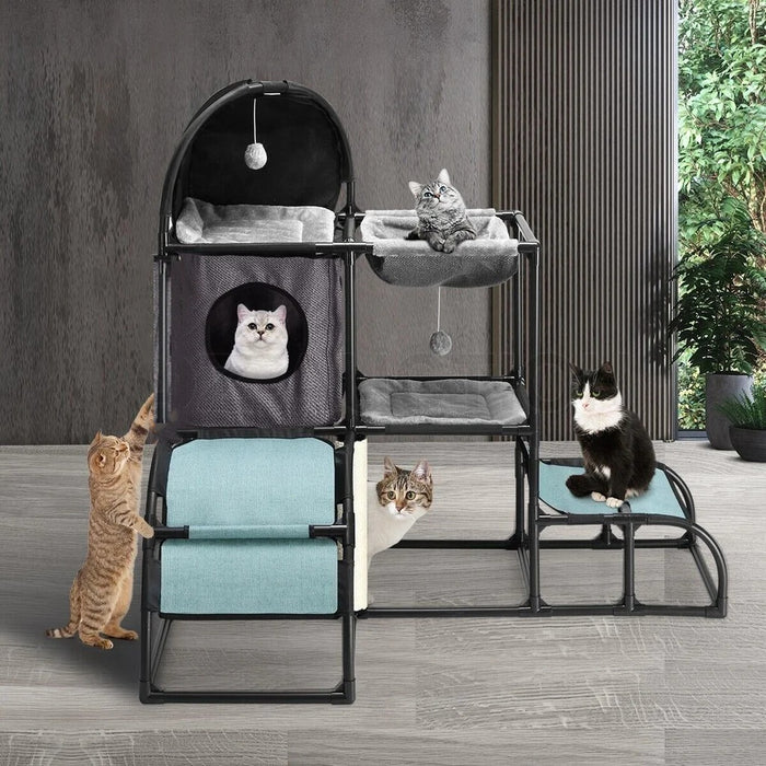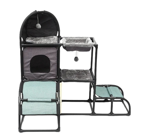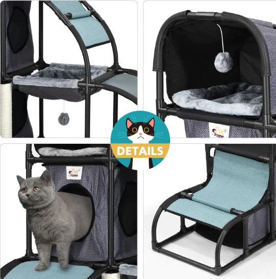 Constructed of durable PVC tubes, scratch-resistant sisal, high-quality Oxford fabric, and soft flannel, this cat furniture gives them a delightful and durable space to play and relax throughout the year.