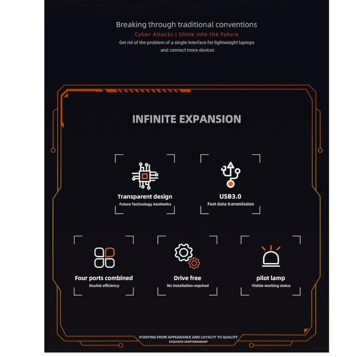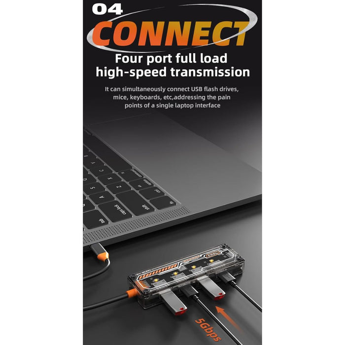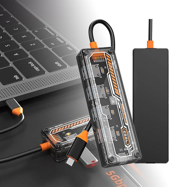 - Smart Indicator Lights: Features an orange light for USB 3.0 connections and a blue light for USB 2.0, allowing easy monitoring of device connectivity and status.