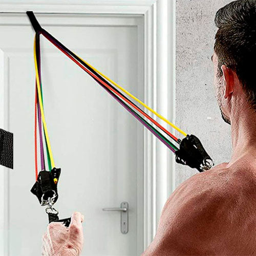 Five colour workout bands, they can be stackable used, suitable for most people, to help you do exercise at home, having a wonderful time.