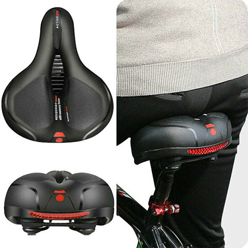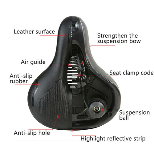 This saddle is more than just a pretty face. With thick padding and dual spring suspension, it provides unparalleled comfort and support for your backside. Our inner high-density foam with springs also helps to absorb the shock from any pesky bumps in the road, making your ride as smooth as butter. Plus, the high-reflective safety sticker ensures your safety during those late-night bike rides!