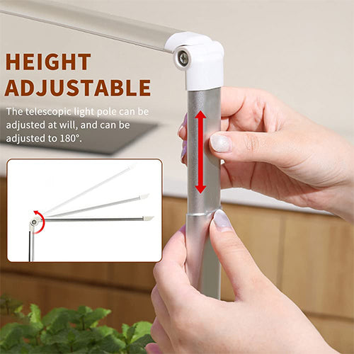 - Height Adjustable: The telescopic light pole can be adjusted at will, and can be adjusted to 180°Indoor Hydroponic Planter Kit Smart with Grow Light.