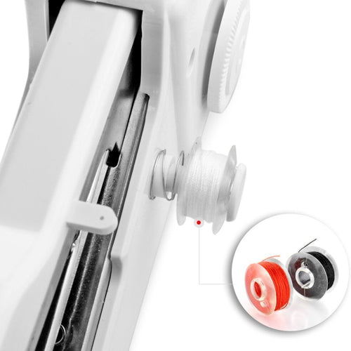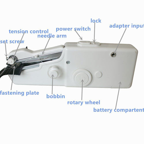 This battery powered cordless sewing machine, is ideal for both travel & home. Make sewing repairs anywhere. Perfect for quick repairs, hem pants, repair fabric or drapes, holes & rips. The hand held sewing machine is compact & portable. Click the power button several times can make the sewing machine to restore the correct position.