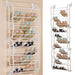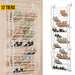 The over-the-door shoe rack is made of carbon steel material which is more durable and is a nice door shoe organizer for your flip-flops, heels, sandals, boots, sneakers, slippers, or accessories. This hanging over-the-door shoe rack is a total of 12 layers, easy storage for up to 36 pairs of shoes; a Great space-saving solution for apartments and dorm rooms; Keeps your closet sleek, chic, and stress-free by removing clutter from the floor. With simple-to-follow instructions, the over-the-door shoe rack assembles quickly and easily, no tools required.