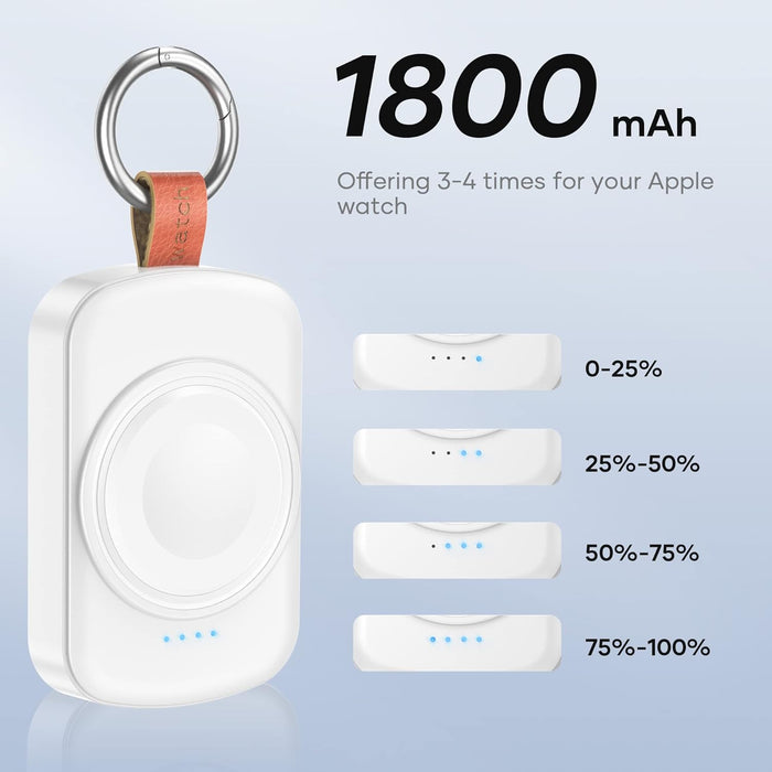 - Portable Convenience: With a built-in 1800mAh battery and a key loop design, this charger hooks onto your bag, providing your Apple Watch with a full charge in approximately 2.5 hours.