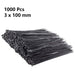 - 1000 Packs Self-Locking Nylon Cable Ties 3 x 100 mm