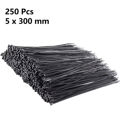 - 250 Packs Self-Locking Nylon Cable Ties 5 x 300 mm