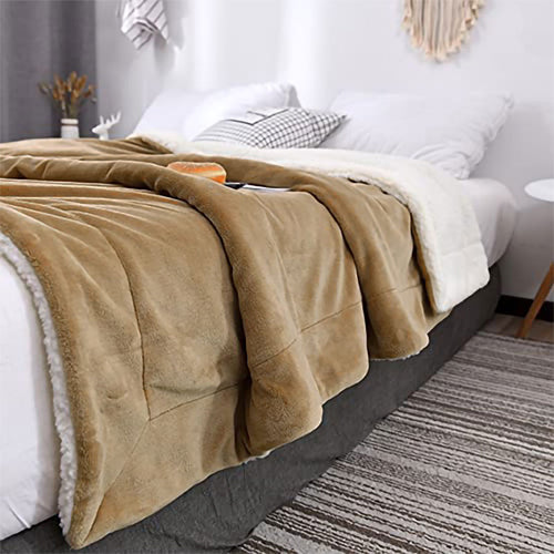• This high-quality sherpa blanket adopts a double-sided design, one side is 230GSM warm sherpa, and the other side is 180GSM soft flannel fleece, which can provide you with different soft feelings.