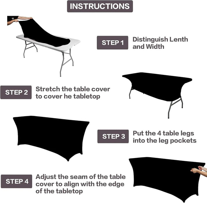 - Perfect Design: The spandex table covers for 6ft tables use four-way spandex material and feature a four-foot cover design, ensuring a secure fit on 4ft rectangle tables, protecting vulnerable areas from bumps, and enhancing the overall aesthetic.