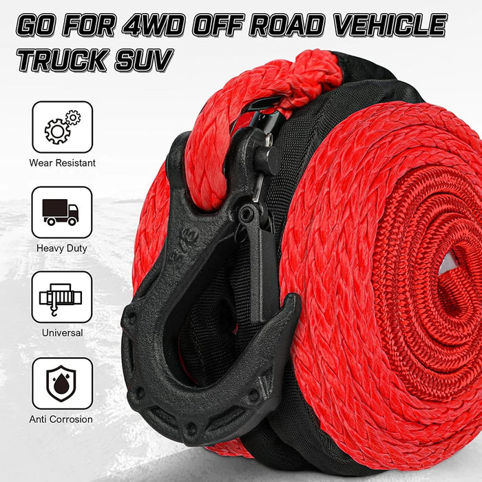 - Perfect Upgrade: This winch rope is not just stronger than traditional steel cables; it's also lighter and safer. Suitable for various winches, including SUVs, trucks, ATVs, UTVs, etc., it effortlessly replaces traditional steel cables, providing a reliable and efficient upgrade for your winching needs.